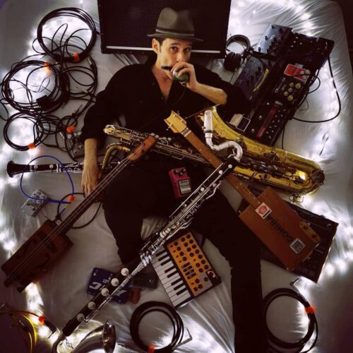 After studying at the conservatories of Evry (clarinet prize) and Montreuil (jazz prize), he turned to improvised and contemporary music. He took lessons from Malo Valois, Denis Colin, and Sylvain Kassap. He studied composition with Bertrand Chapelier and Jean Gobinet. He composes and plays clarinet, bass clarinet, baritone saxophone, diatonic harmonica, singing, and cigar box guitar.