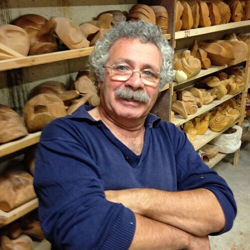 Stefano Perocco encountered the world of masks in 1977 during a workshop led by Donato Sartori 3 as part of the 37th Venice Biennale , then directed by Luca Ronconi and known in history as the ” Biennale del Dissenso [ archive ] ” 4 . That same year, Donato Sartori introduced him to Carlo Boso, with whom he began a long and lasting collaboration. With Donato Sartori, he made Commedia dell’Arte masks for the show Maschere, cronache di servitori e padroni staged by Carlo Boso and created in Venice , campo del Ghetto and performed in various squares of the city.